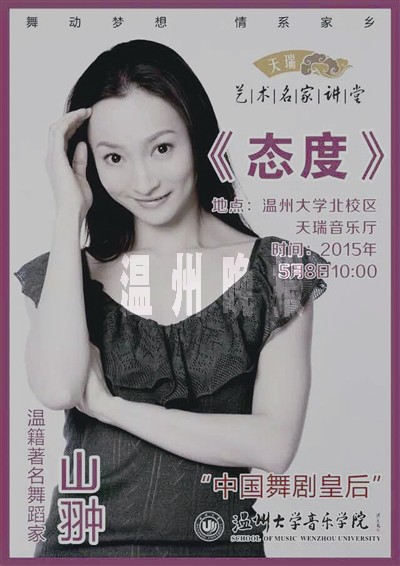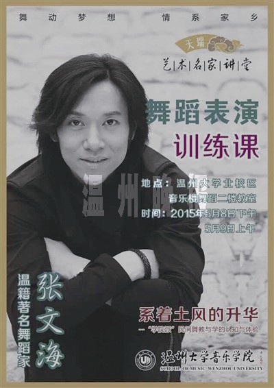 据悉,此次“文化回归”活动流程包括启动仪式、学术讲座、研讨会、专业教学等部分。作为首批受邀的舞蹈家,中国舞剧皇后山翀将带来一场艺术名家讲坛:《态度》;现就职北京舞蹈学院的张文海则给温州的学子们带来为期两天的舞蹈表演训练课。□青衣
