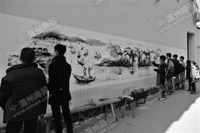当日,志愿者们根据治水宣传内容进行分解,江南水乡的美景,配上“只留清气满乾坤 ”“泉眼无声惜细流 ”等诗句,水乡之美跃然墙上。志愿者的手绘吸引了不少村民前来围观,而这种信息可视化,让“五水共治”宣传内容更简单易懂易传播。一名参加活动的志愿者表示,通过这样的活动,不仅让自己对“五水共治”有了更深了解,而且在服务基层的同时提高了自身的绘画功底,也让志愿服务更加接地气。