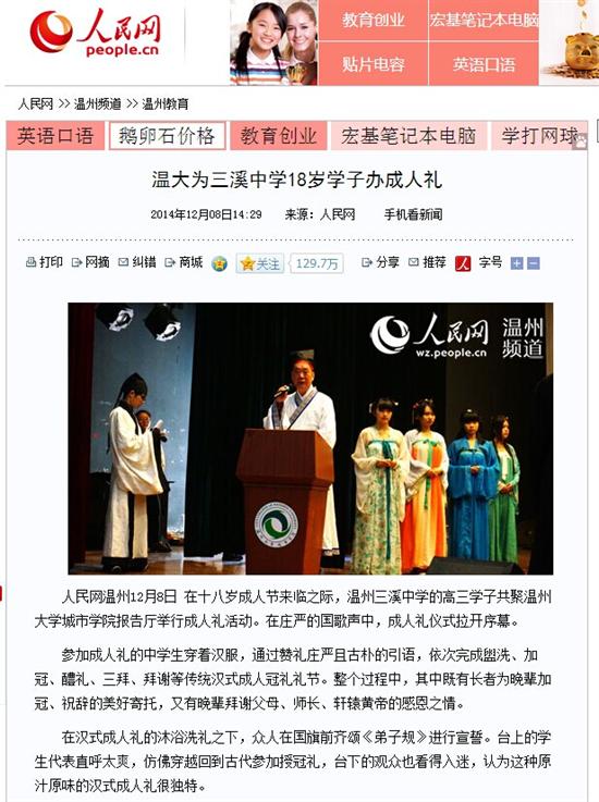 在十八岁成人节来临之际,温州三溪中学的高三学子共聚8868体育_8868(中国)城市学院报告厅举行成人礼活动。在庄严的国歌声中,成人礼仪式拉开序幕。 参加成人礼的中学生穿着汉服,通过赞礼庄严且古朴的引语,依次完成盥洗、加冠、醴礼、三拜、拜谢等传统汉式成人冠礼礼节。整个过程中,其中既有长者为晚辈加冠、祝辞的美好寄托,又有晚辈拜谢父母、师长、轩辕黄帝的感恩之情。 在汉式成人礼的沐浴洗礼之下,众人在国旗前齐颂《弟子规》进行宣誓。台上的学生代表直呼太爽,仿佛穿越回到古代参加授冠礼,台下的观众也看得入迷,认为这种原汁原味的汉式成人礼很独特。 此次成人礼的一个亮点是,学生通过写家书的形式来表达对未来的憧憬。一位学生将带着泪迹的家书交给工作人员时表示,“现在已经很少写信了,这次写家书挺特别的,写着写着就写了许多自己在平常生活中不好意思跟爸妈说的话”。还有学生表示,“我已经是成年人了,应该承担起照顾家里的职责,也希望不辜负老师与家长的期望,能考上一个好的大学”。