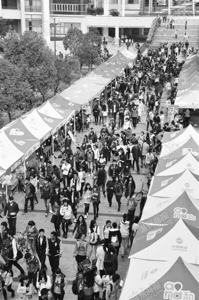 昨日下午,温大的校园内变成了一个小集市,人潮涌动,叫卖声、讨价还价声此起彼伏。大学生们周三下午一般都是没有课程安排的,于是,近200名大学生在这个下午一秒变商人,在校园里摆起了摊位,举行一年一度的“小温商、大天下”校园集市活动。