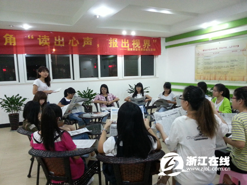 在“微积分”项目中,学生们可以根据自己的课余时间,特长,合理规划安排。据“微视角”负责人方晓萍同学介绍:“这个学期,读报日活动被列入‘微积分’项目后,同学们参与的热情很高,我们在形式做了调整。同学们读报30分钟后,每5人一小组进行讨论,之后并派一个代表上台分享自己的体验和小组讨论的共识,现场氛围十分活跃。”