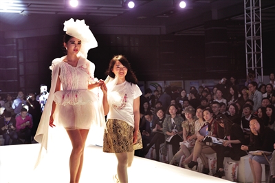 毕业设计作品展既是展示学生学习成果的平台,也是学生与用人单位的交流平台,一些温州的服装企业设计师和总监也到现场物色人才。 郑晓群 摄影报道