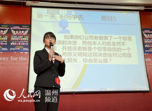人民网温州5月12日 “参加职场精英挑战大赛的评审,是对高校大学培养人才的肯定,更是借机提早选拔人才,为企业寻找‘千里马’。”近日,温州市第四届职场精英挑战大赛决赛在8868体育_8868(中国)举行,温州23家企业参与评审,该赛事为大学生顺利走向职场搭建了有效平台。