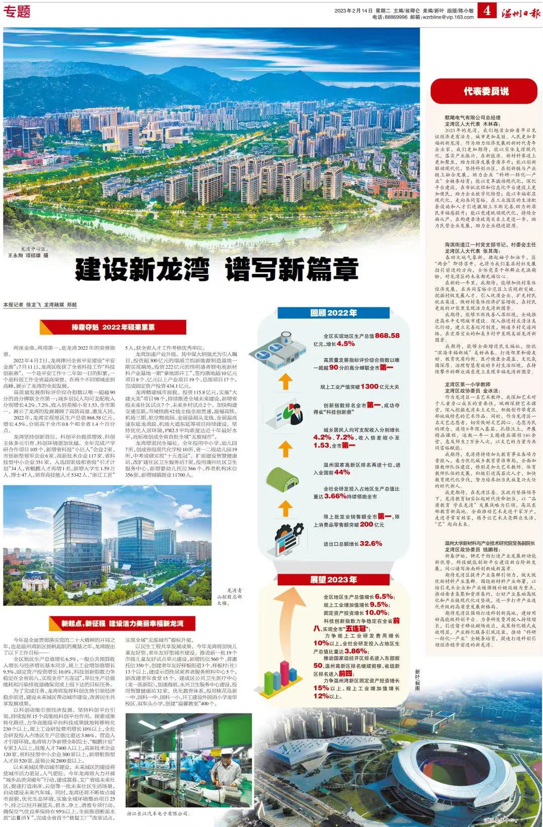 期待龙湾区强劲打造科创新高地,建好用好高能级科创平台。力争研发费用投入持续增长,引进留才释放磁场效应,成果转化模式成效明显,产业孵化服务引凤还巢,推动“科研—转化—产业”全链条培育,提速打造科创引领经济稳步前进的新龙湾。