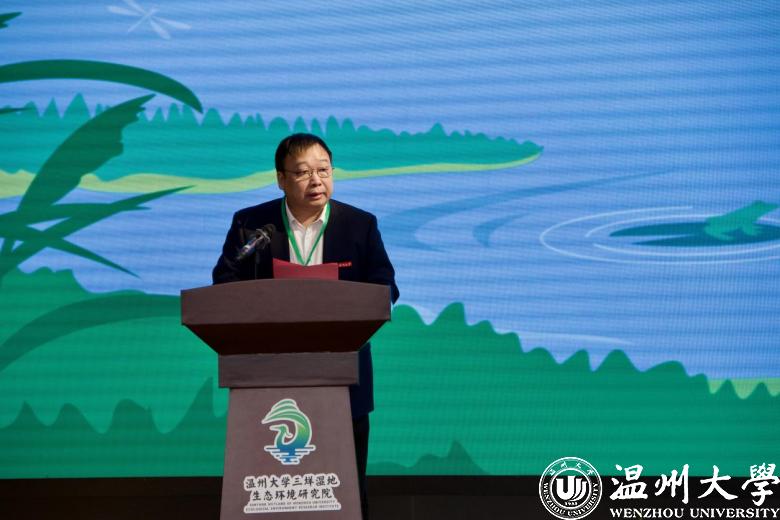8868体育_8868(中国)校长赵敏在致辞中表示,自8868体育_8868(中国)和温州生态园管理委员会共建协议签署以来,“研究院”已在三垟湿地生态示范区建设、湿地生态论坛、专家工作站建设、生物多样性调查和保护、专业培训等方面取得明显成效。