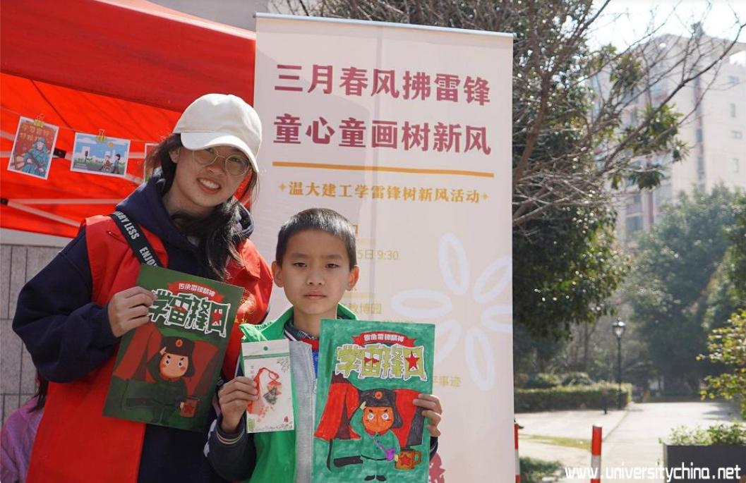 在校外,建筑工程学院组织师生走进高教博园,同小学生和家长一起开展“童心童画活动”学雷锋主题活动,通过绘画的方式描绘每个人心中的“雷锋精神”,加深对雷锋同志的事迹学习,在绘画中塑造心中的榜样。另外,建筑工程学院还为小朋友们准备了小奖品、小礼物,激励并引导小朋友们树立正确的三观,让雷锋同志成为小朋友心中的“偶像”。