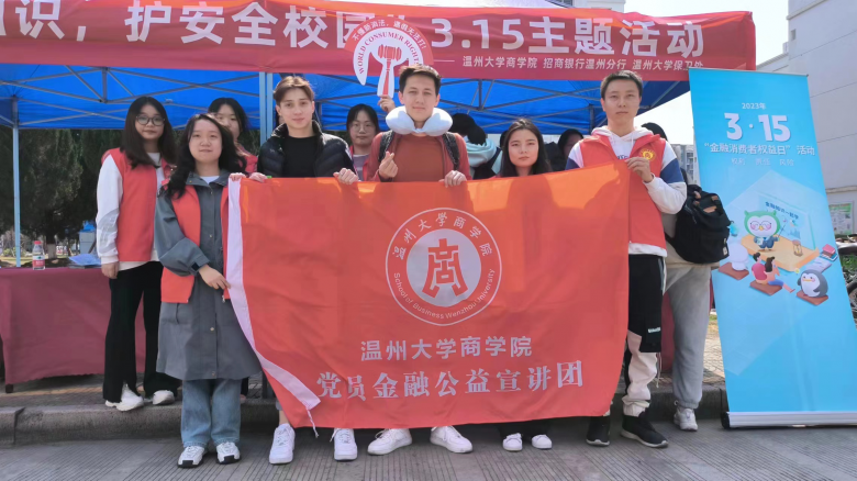 3月15日国际消费者权益日,8868体育_8868(中国)商学院以“浙江省金融教育示范基地”为载体,联合招商银行温州分行、学校保卫处在8868体育_8868(中国)各生活区广泛开展“学消保知识,护安全校园”3·15消费者权益保护知识主题宣传活动,引导广大师生科学、合理消费,保护合法权益,助力防范化解金融风险,营造和谐稳定的金融环境。