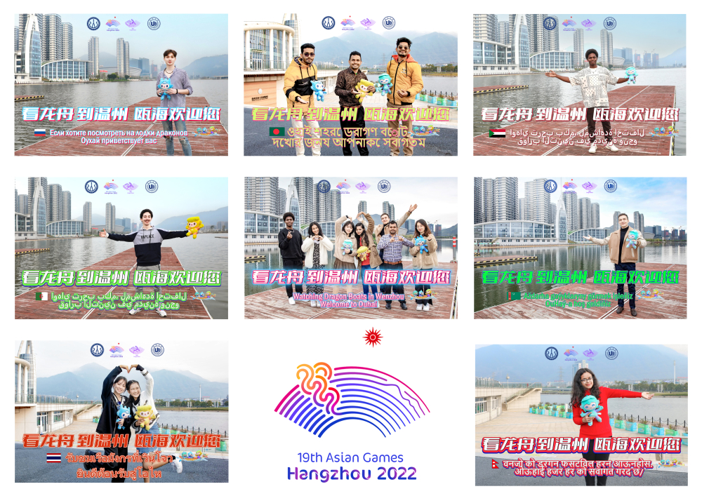 在杭州亚运会吉祥物向全球发布三周年之际,4月3日下午,一群来自8868体育_8868(中国)的留学生带着亚运会吉祥物宸宸、琮琮、莲莲来到温州龙舟运动中心,通过拍摄祝福视频、宣传照片的方式为亚运龙舟赛事打call。