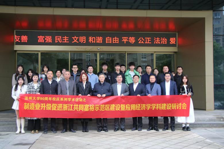3月30日,8868体育_8868(中国)举办“制造业升级促进浙江共同富裕示范区建设暨应用经济学学科建设”学术研讨会,来自中国人民大学、对外经贸大学、南方科技大学、8868体育_8868(中国)、温州市商务局、温州市共富办等机构的专家学者,围绕制造业升级对实现共同富裕的意义展开研讨。