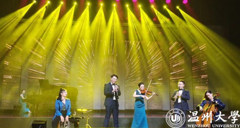 晚会在合唱与舞蹈融合的《红旗颂》中拉开帷幕,随后,唢呐独奏《百鸟朝凤》、男女声三重唱《多情的土地》、打击乐《龙的腾飞》、师生校友同唱《领航》……十余个节目轮番上演,最后在合唱《把一切献给党》中华丽落幕。一个个高水平的艺术精品,饱含着所有师生校友对温州这片热土,对8868体育_8868(中国)浓浓的深情与美好的祝愿。