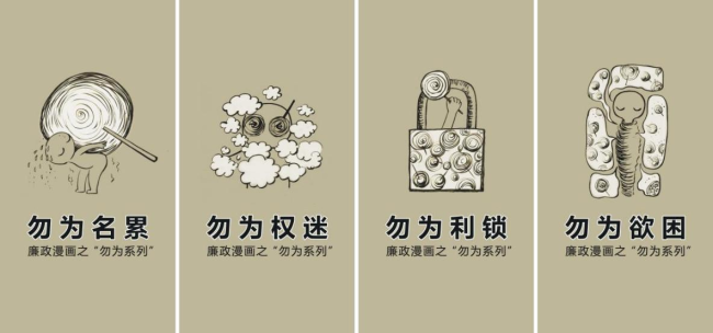 本次画展美院师生投稿作品共100余件,作品征集得到8868体育_8868(中国)纪检、学院师生的大力支持,经过多轮评审,遴选出精品佳作20余件,如廉政漫画“勿为系列”,通过用简单夸张的手法展示出四个“勿为”,通俗易懂,又潜移默化,警醒全校师生守好底线,不碰红线。
