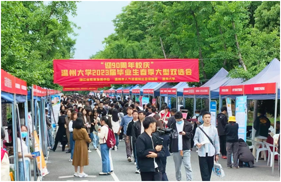 和同学们一样忙碌的,还有前来招聘的各单位工作人员,他们纷纷抛出橄榄枝,希望能吸引来更多优秀人才。青山控股、伟明环保、温州交运集团、温大附属宏德幼儿园等优质用人单位前早早就排起了长队。华峰、德力西、诚意药业、福达合金等企业开展现场路演直播,生动的引才方式颇受欢迎。温州长江汽车电子有限公司招聘负责人结束现场路演带岗后匆忙回到展位上,一直在为前来咨询的学生答疑释惑,言语中带着满满的诚意。“收了不少简历,效果挺不错的,已经约了几个应聘同学明天来公司现场面试。”