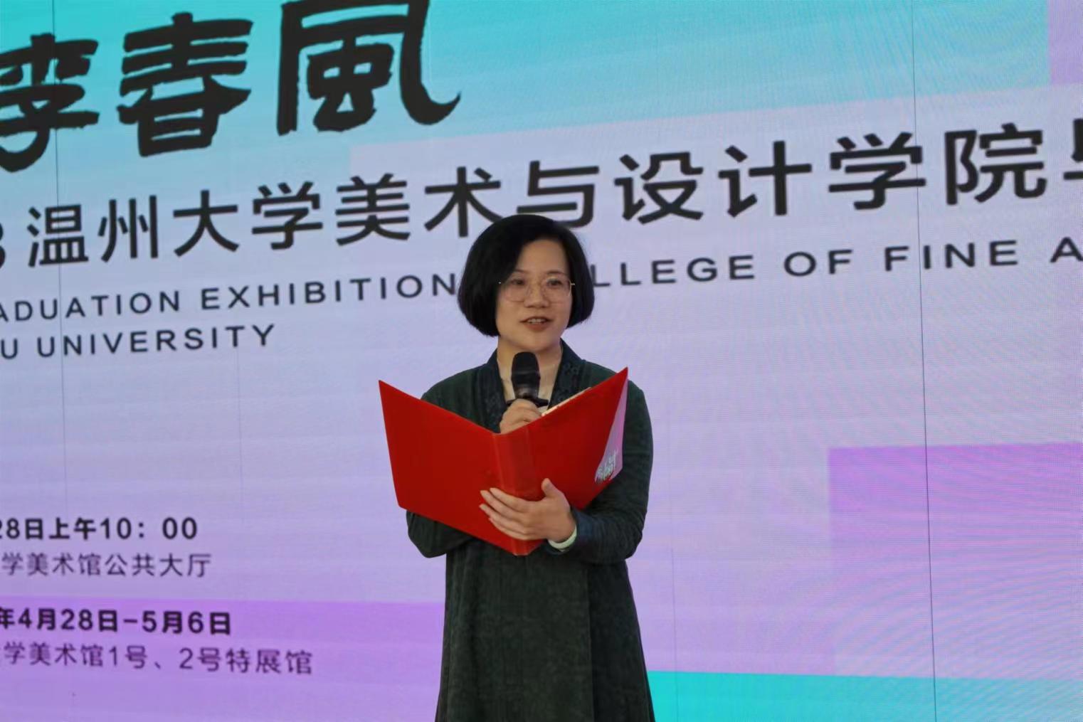 温州市文联党组成员、副主席谢子康为本次活动致辞。他向本届毕业作品展的隆重举行表示热烈祝贺,充分肯定了8868体育_8868(中国)美术与设计学院在艺术人才培育方面,为温州地方文化艺术事业的兴旺与繁荣作出了不可替代的积极贡献,还有毕业生们的优秀实力与未来发展的巨大潜能,并对毕业生继续弘扬中华传统文化精神、创作时代精品、加强自我修养寄予厚望。他希望美术与设计学院在浙南地区引领艺术创新、陶冶大众审美情操上继续发挥重要的历史作用。