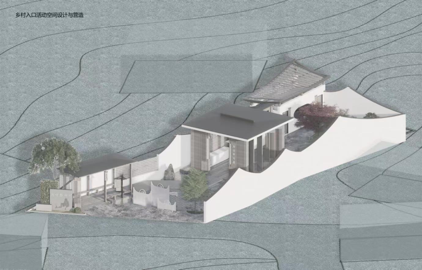 环境设计专业展出的44件设计作品中,有立足于乡村振兴背景的环境规划设计作品,如《文成县玉壶镇吴垟村侨韵未来乡村设计》《以艺术介入乡村的理念对流湘村发展模式的探索》等,有以城市发展思考为主题的作品,如《盒子成长记——应对城市孤独感的弹性混合概念社区》《从海南省居民居住空间问题引申出的对于海平面空间的再扩张设计》等,有采用VR虚拟仿真技术的作品,如《8868体育_8868(中国)南校区虚拟仿真》《在ue5之中实现虚拟校园交互设计与仿真》等,其中部分作品以实际课题形式做对应的设计,也有以未来环境改造设计与研究性质的设计。龙鹏同学的《乡村入口活动空间设计与营造》项目地址位于湖南省凤凰县苗寨德榜村,设计尊重场地现状,保留优质现状绿化、对部分区域进行景观提升。设计着意营造具有苗族当地特色的入口活动空间,将形式美融入功能需求,为游客、村民创造自然优美、多元丰富、舒适的室外休憩空间,满足交流、休闲、候车等功能需求,并宣传德榜村苗族银饰非遗文化以及当地银饰经济发展。