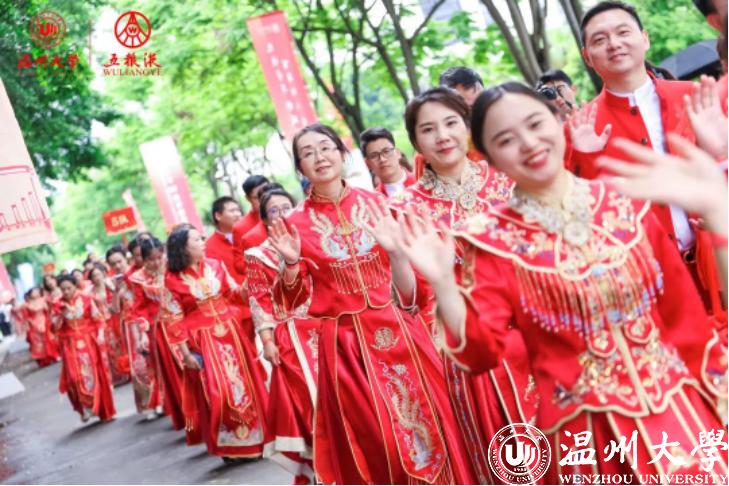 纪念婚礼充分挖掘温大的非遗文化底蕴,由历任校领导为校友夫妻颁发系列“非遗盲盒”。