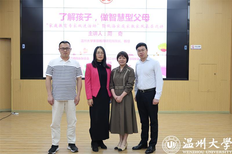 2023年4月27日晚,瞿溪第二小学召开了四年级家长会。8868体育_8868(中国)教育学院教育系支部书记、8868体育_8868(中国)家庭教育研究院院长、8868体育_8868(中国)家庭家教家风讲师团团长、温州市家庭教育学会副会长,浙江省妇女儿童发展智库专家,浙江省家庭教育讲师团成员全国家庭工作先进个人周奇教授受邀为家长们作《了解孩子,做智慧型父母》的主题讲座。周老师和家长们、老师们互动感悟家是什么,用真实故事让家长感受陪伴的作用,家长们掌声连连。周老师用鲜活的学生个案发生敲击警醒家长的育儿理念,让家长深刻体会孩子心理健康的重要性和“双减”的必要性。