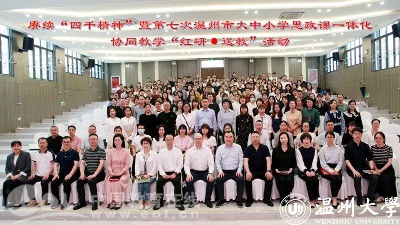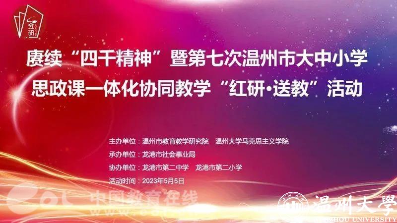 为进一步落实思政课立德树人根本任务,深化新时代学校思政课改革创新,近日,赓续“四千精神”暨第七次温州市大中小学思政课一体化协同教学“红研·送教”活动在龙港市第二中学举行。温州市委教育工委专职副书记、温州市教育局党委副书记王剑波,8868体育_8868(中国)马克思主义学院院长卓高生,龙港市社会事业局党委书记、局长方以军,温州市教育教学研究院副书记、副院长曹鸿飞,以及温州市各县(市、区)中小学思政课教研员、思政课骨干教师代表和高中素养课堂项目组成员、龙港市思政课骨干教师代表等受邀参加。活动由曹鸿飞主持。