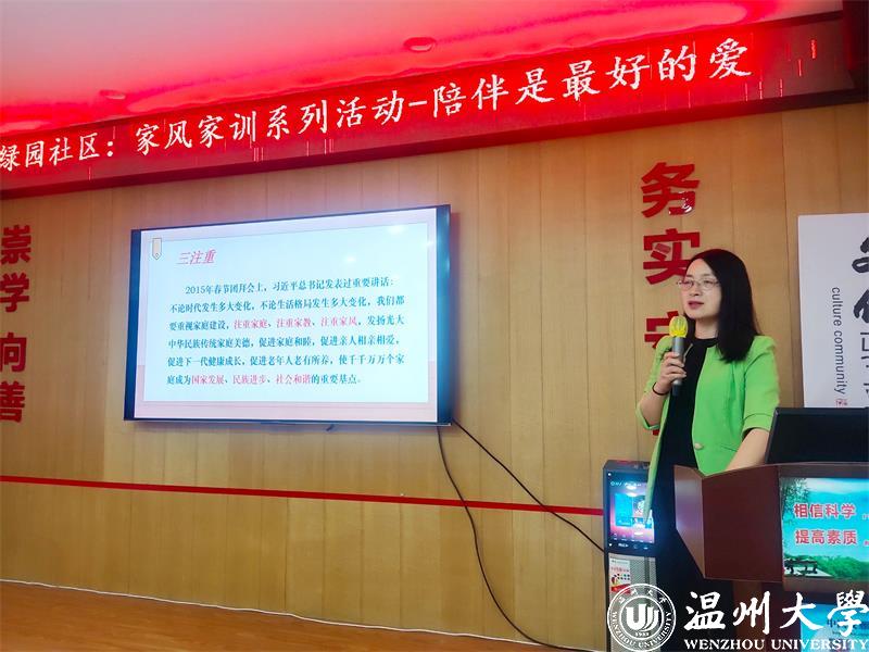 “孩子最渴望的、最好的礼物其实就是家人的陪伴。或许是爸爸与孩子嬉戏打闹,或许是与妈妈的一起做手工,或许是晚上父母坐在身边讲故事,或许是和全家人一起外出野餐……”近日,温州市家庭教育服务进社区家风家教系列活动进文化礼堂走进蒲鞋市街道绿园社区,8868体育_8868(中国)教育学院教育系支部书记、8868体育_8868(中国)家庭教育研究院院长、8868体育_8868(中国)家庭家教家风讲师团团长、浙江省妇女儿童发展智库专家、温州市家庭教育学会副会长周奇教授为家长们开展《陪伴是最好的爱》家庭教育公开指导课。