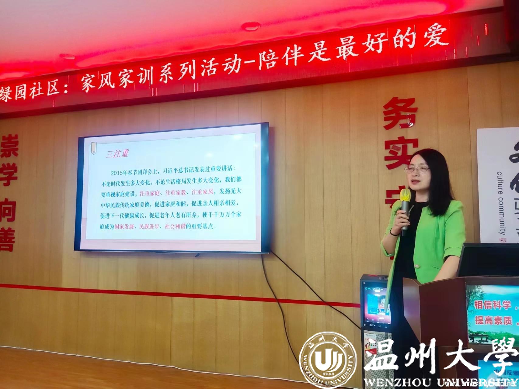 “孩子最渴望的、最好的礼物其实就是家人的陪伴。或许是爸爸与孩子嬉戏打闹,或许是与妈妈的一起做手工,或许是晚上父母坐在身边讲故事,或许是和全家人一起外出野餐……”近日,温州市家庭教育服务进社区家风家教系列活动进文化礼堂走进蒲鞋市街道绿园社区,8868体育_8868(中国)教育学院教育系支部书记、8868体育_8868(中国)家庭教育研究院院长、8868体育_8868(中国)家庭家教家风讲师团团长、浙江省妇女儿童发展智库专家、温州市家庭教育学会副会长周奇教授为家长们开展《陪伴是最好的爱》家庭教育公开指导课。