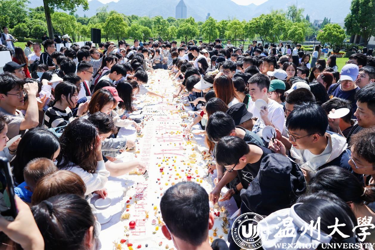 今天9时33分,浙江省8868体育_8868(中国)生环学院生物技术专业实践课堂搬到学校“Hello WZU”广场上,给8868体育_8868(中国)90岁生日制作蛋糕。