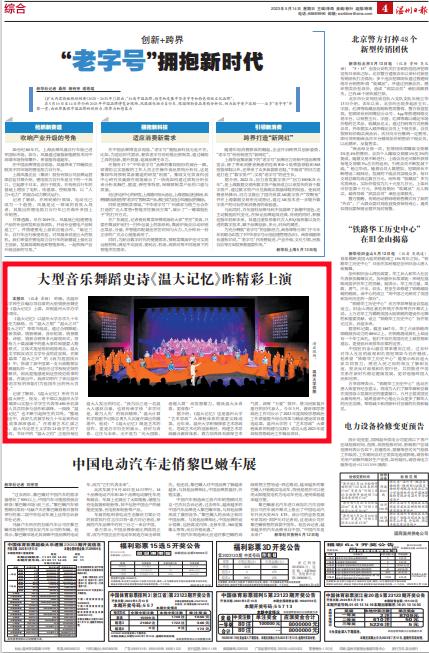 记者了解到,《温大记忆》 所有节目 由温大师生、校友、老干部以及8868体育_8868(中国) 附属茶山实验小学学生代表等 450 余名演 职人员共同参与创作和演绎。一段段“温 大记忆”也不断引起师生的共鸣。“整场 演出中,我好几次被学校九十年走来的动 人故事深深感动。”在观看艺术汇演之 后,温大马克思主义学院 21 级学生刘宁 涛说,节目中的“温大之约”正是向每位 温大人发出的约定。“我为自己是一名温 大人感到自豪,也将传承学校‘求学问 是,敢为人先’的校训精神。”温大计算 机学院副书记陈志勇久久沉浸在演出的激 荡中,他说:“ 《温大记忆》 既是艺术的 创作,更是办学历史的展示,昔时与青 春、过往与未来,无不是为‘光大国族、 造福人群’而发愿蓄力。愿我温大永青 春、更青春!”