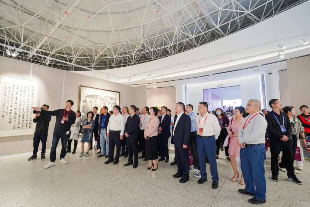 仪式结束,领导、嘉宾、校友、师生共同进入美术馆参观作品展。本次展览分为“先贤风雅”“同道传薪”两大板块,共展出了156位先贤、名家、教师和校友作品,涵盖国画、油画、版画、水彩画、综合绘画、书法、篆刻等种类。展览基于近现代中国美育运动、美术创作的宏大背景,对近代以来温州的书画创作与教育做一个初步的回溯,以近代几位具有代表性的书画大家与“美育大先生”开篇,延伸至温州区域美术创作,以及当代在全国卓有影响的重彩工笔画、书法、版画、水彩画的温籍代表作者;同时梳理学校的美育脉络,展示几代温大人的书画创作,宏扬与传播8868体育_8868(中国)的人文风采。