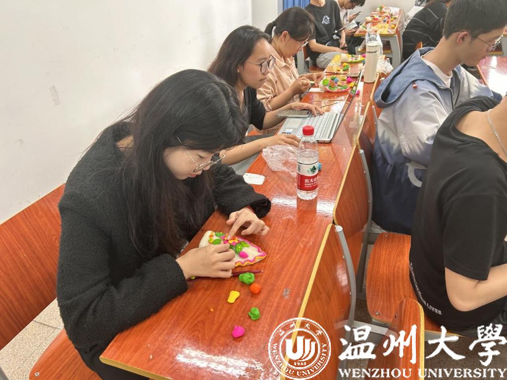 本学期,温大人文学院“手造温州”课程延续“非遗+劳动教育”的上课模式,邀请温州非遗传承人走进校园,通过对剪纸、米塑、发绣、泥塑、吹糖人等温州传统非遗技艺的感知与探索,带领大学生们一同触摸传统匠心匠艺,一起感受历经时间沉淀的非遗之美,一块体验劳动创造的乐趣。