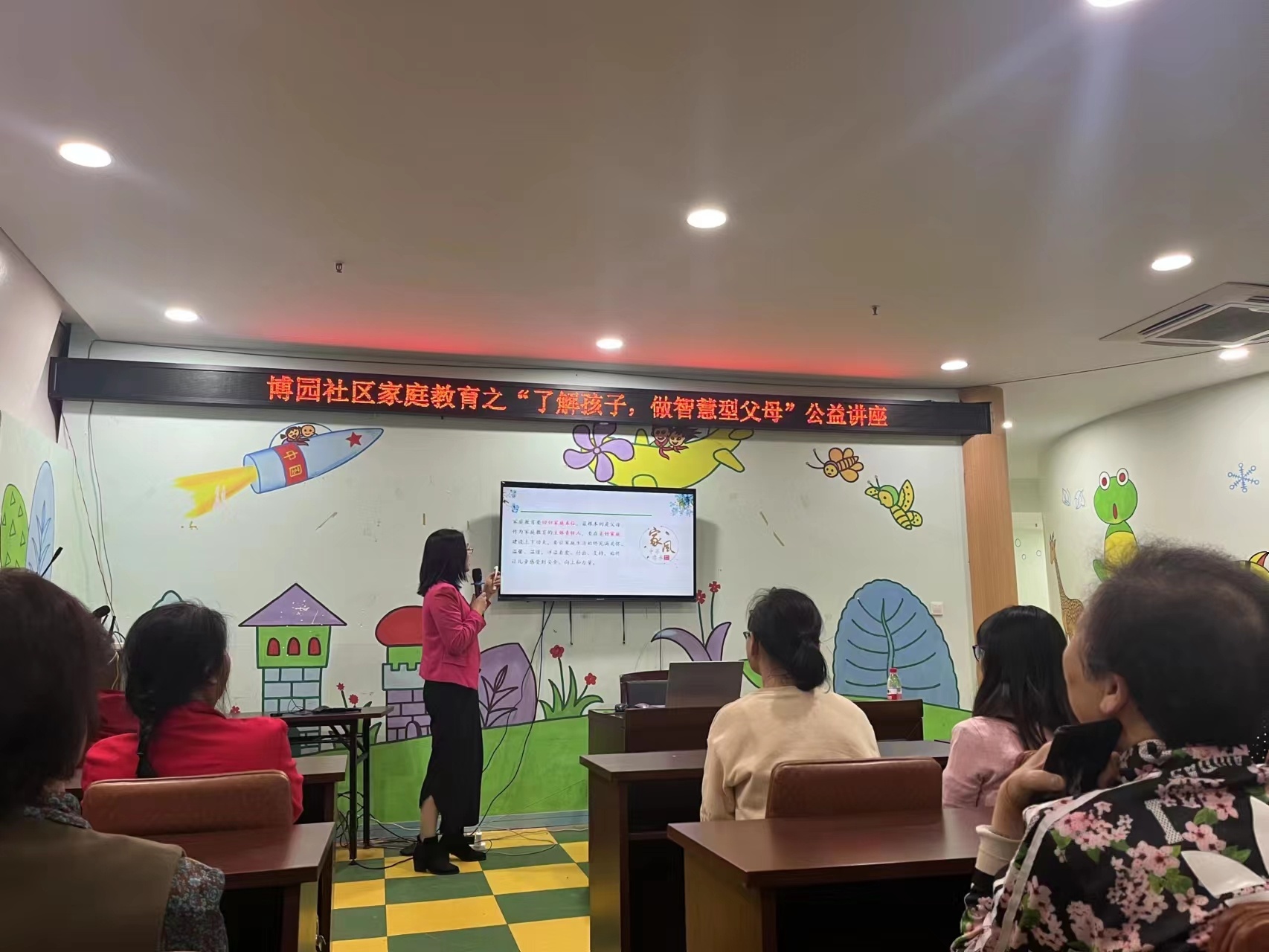 在博园社区,一堂名为“了解孩子,做智慧型父母”的公益讲座吸引了诸多百姓前来。此次讲座的听众大多为年龄较大的居民,因此,周教授用拉家常的方式与家长们拉近距离。如何了解孩子?如何拉近与孩子之间的距离?了解了孩子之后要如何与孩子进行沟通?周教授利用几个鲜明的案例让家长们循序渐进地明白,让孩子愿意将心事分享出来,最重要的还是正确的交流方式以及能够设身处地地换位思考。家长们反响热烈,纷纷表示掌握了“做智慧型父母”的秘籍。