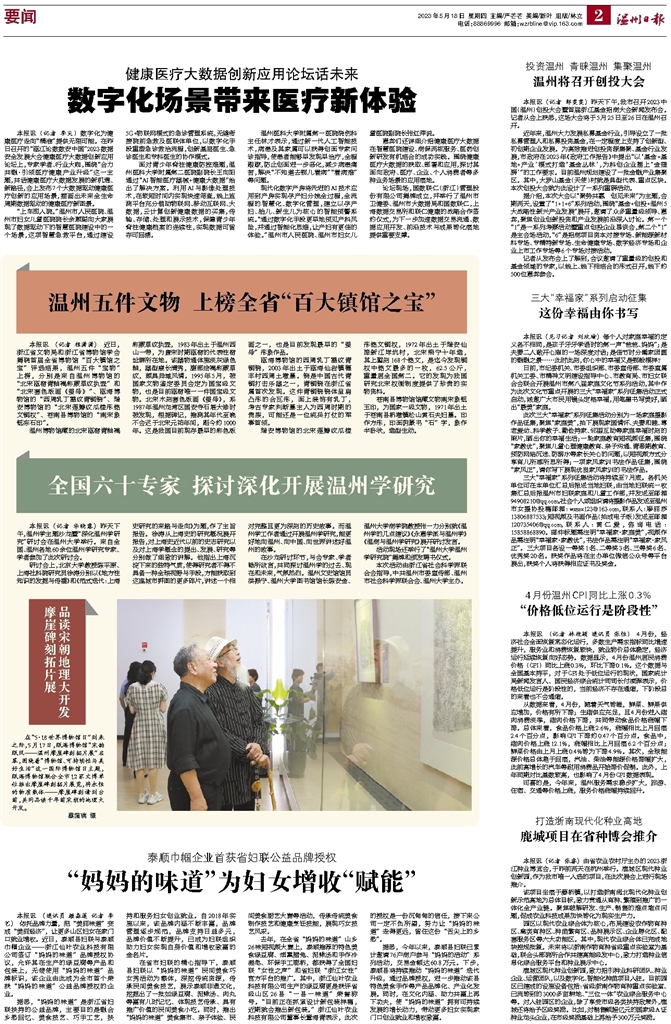 相关链接:http://baozhi.wendu.cn/newspaper?mediaKey=wzrb&classify=0&id=1&publishTime=2023-05-18&showArticleDetail=true&docId=170173&curEdition=02