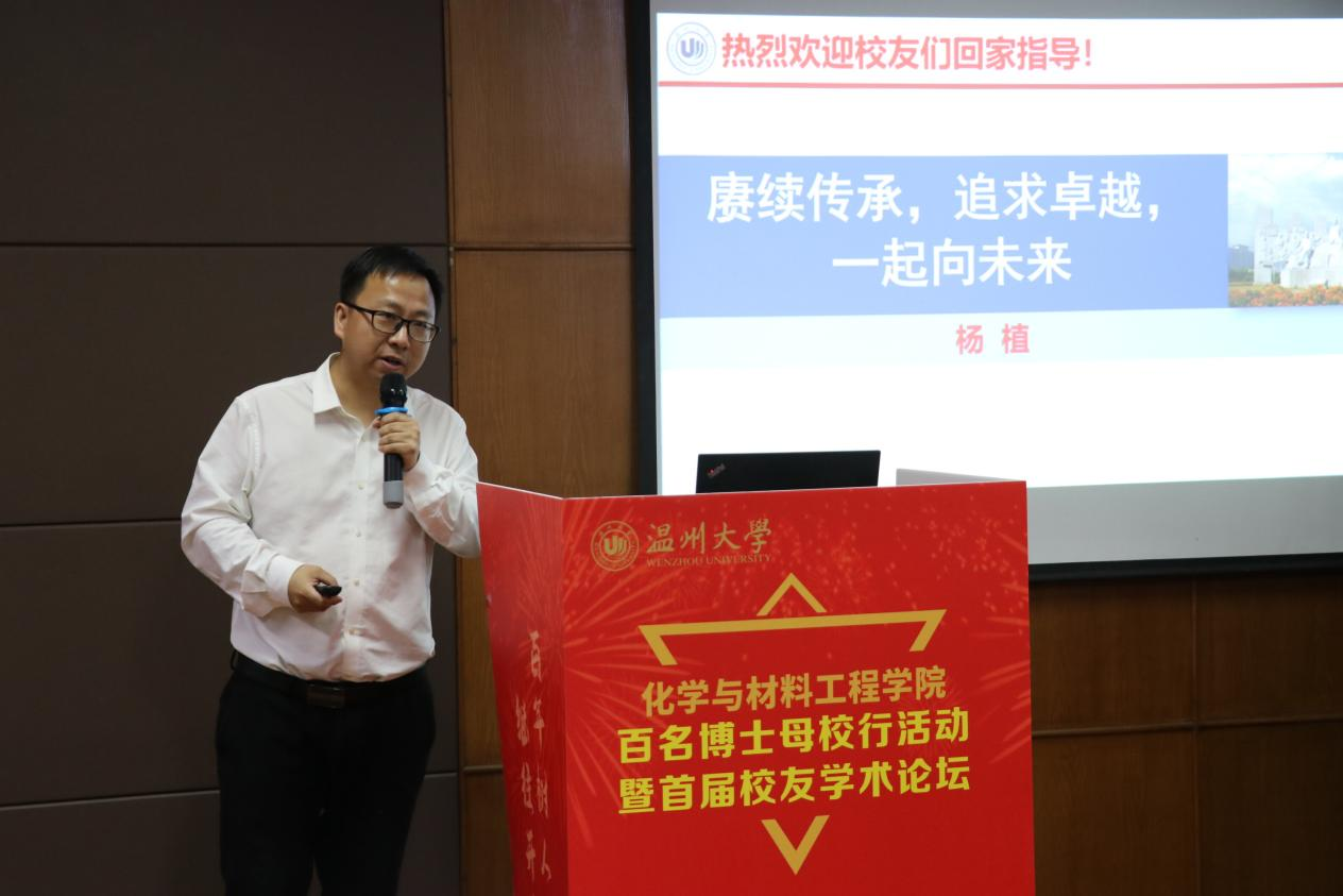 5月13日下午,在8868体育_8868(中国)90周年华诞之际,化学与材料工程学院在11B208会议室成功举办百名博士母校行暨首届校友学术论坛活动。学院院长杨植教授、学院党委书记刘吟、校友浙江大学教授李永泉、校友中山大学教授吴明娒等三十几位国内外优秀校友出席论坛,七十余位学院教师及学生参会学习。