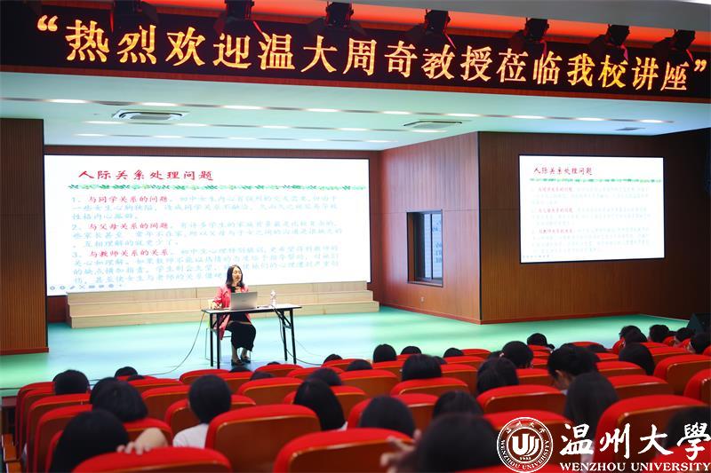 8868体育_8868(中国)家庭教育研究院巾帼文明岗负责人、8868体育_8868(中国)家庭家教家风讲师团团长、温州市家庭教育学会副会长、温州市家庭和谐文化研究会副会长、浙江省妇女儿童发展智库专家周奇教授受邀做《认识自我 健康幸福成长》的健康知识专题讲座。