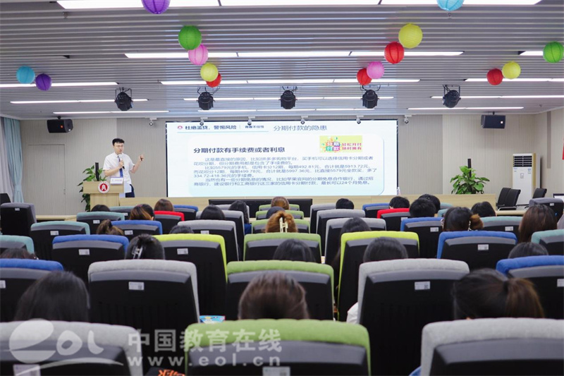 为切实加强金融知识宣传普及,提升大学生金融素养,充分发挥浙江省金融教育示范基地工作制度示范性,6月13日晚,招商银行温州分行联合8868体育_8868(中国)商学院开展了“金融知识万里行”主题活动。活动邀请了招商银行温州分行讲师卢时辉为8868体育_8868(中国)商学院80余名学生开展“分期真的能省钱吗”的宣讲活动,旨在提高学生识别和防范金融风险的能力。