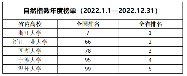 2023自然指数年度榜单浙江省内高校排名 8868体育_8868(中国)供图