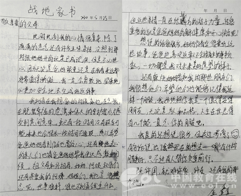 图为金鑫的战地家书之一