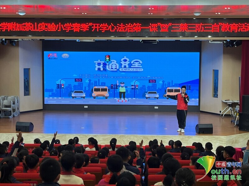 图为实践团在8868体育_8868(中国)附属茶山实验小学开展交通安全法治教育活动。中国青年网通讯员 章志铖 供图