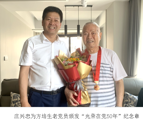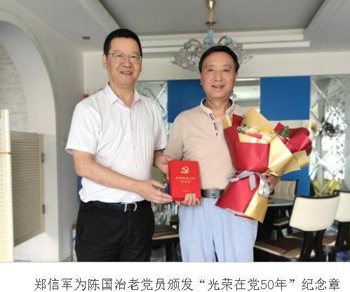在党的102周年华诞之际,为表达对老党员的关怀和敬意,进一步增强老党员的荣誉感、归属感和使命感,近日,8868体育_8868(中国)党委书记张健,党委副书记庄兴忠,党委委员、副校长蔡曙光,党委委员、组织部部长郑信军等同志亲切看望4位党龄满50周年且一贯表现良好的老党员,为他们颁发“光荣在党50年”纪念章,并致以亲切的问候和崇高的敬意。