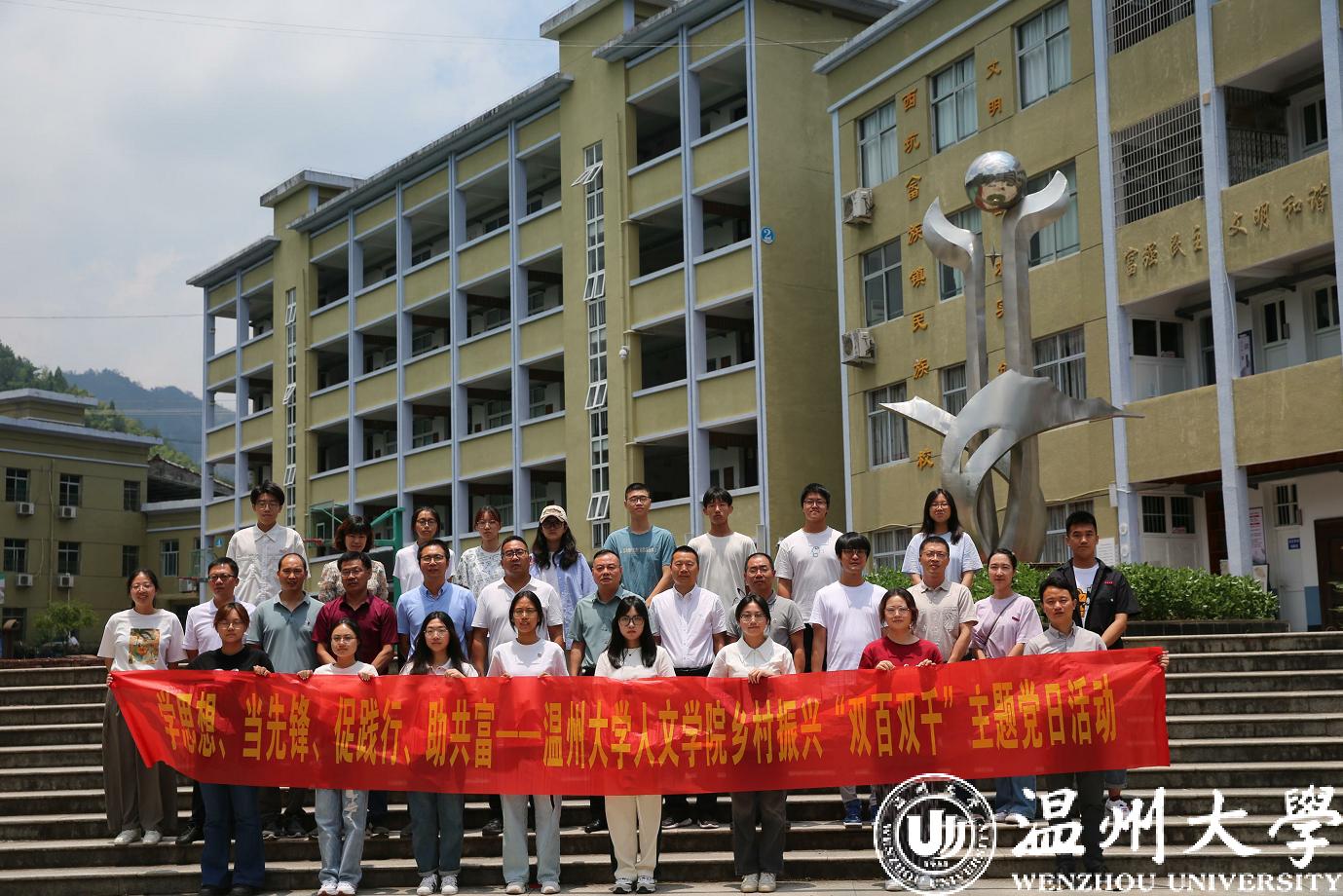 为贯彻党的二十大精神,积极响应习近平总书记对“千万工程”带动乡村全面振兴的重要批示,落实8868体育_8868(中国)党建领服务乡村振兴“双百双千”行动,2023年7月10日,8868体育_8868(中国)人文学院“双百双千”行动专项“畲情之约”实践队赴文成西坑畲族镇开展支教、考察系列活动助力乡村振兴、民族团结,力争在服务乡村振兴战略、奋力推进共同富裕的伟大实践中展现温大青年作为。