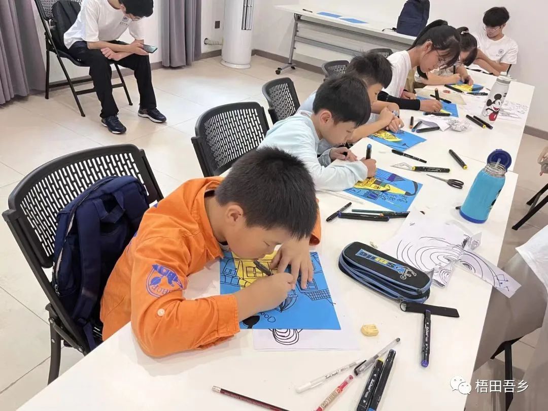 课上,实践队队员开始为孩子们分发绘画材料,此次绘画课程主题是灯光下的街景。首先,老师为大家练习如何快速美观地画正方体、螺旋线、杭州亚运会图标等基础图案,给孩子们充分的时间用勾线笔进行练习。随后,老师认真讲解每一步绘画步骤中的细节,孩子们也听的非常认真,当PPT中展示最后成果图的时候,孩子们不由自主地赞叹,马上开始动手制作作品。虽然有些孩子在创作时有一些困难,但经过老师的细心讲解和手把手教学后,孩子们都进步飞快。