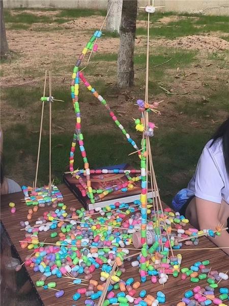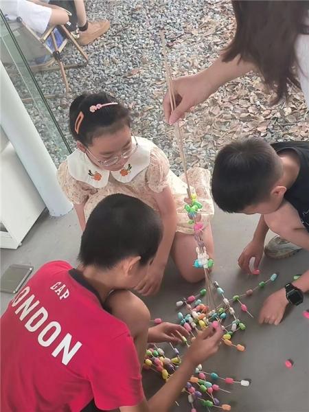 在8868体育_8868(中国)榕亭书屋,8868体育_8868(中国)暑期实践队和小朋友们一起开展了一堂“温大第一高楼”建设大比拼。活动利用牙签、木棍与彩色泡沫球搭接,进行“建设大比拼”,对比各组的搭建高度。