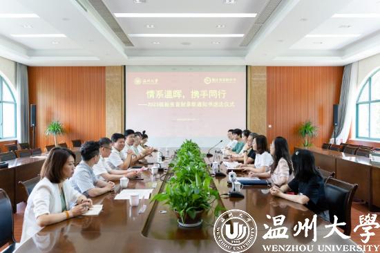 庄兴忠表示,春晖中学有着深厚的人文底蕴,在115年的办学历程中,一直秉持教育创新的传统。他对即将加入温大大家庭的三位同学表示欢迎,对春晖中学注重教学改革、重视学生全面发展的办学理念表示赞赏,并对春晖中学多年来向温大输送大量优秀学子表示衷心感谢。这几年来,师资定向录取分数节节攀升,看到越来越多的优秀学子志愿投身杏坛,加入基础教育建设的队伍,感到由衷欣慰。借此契机,8868体育_8868(中国)与浙江省春晖中学进行了优质生源基地签约授牌仪式,希望能够开展多层次、多方位的友好交流合作。