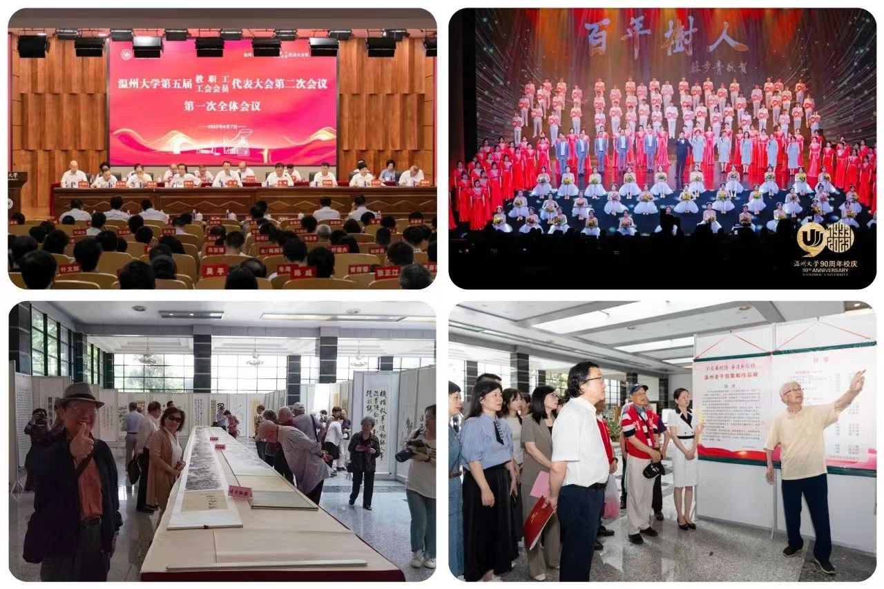 离退休干部代表出席学校第五届教职工暨工会会员代表大会第二次会议。学校老干部声乐与合唱小组部分老党员参演大型情景音舞史诗《温大记忆》。学校老干部书画院承办的“九秩芳华筚路蓝缕 薪火相传再续辉煌——庆祝8868体育_8868(中国)办学九十周年”书画作品展于茶山校区展出。在“不忘来时路 奋进新征程”温州老干部集邮作品展上,九旬高龄老党员林选青、周瑾通过精心组编的邮票、信笺和特殊邮戳宣传辉煌党史;老党员张汝潮、陈康硕、潘明初担任邮展讲解志愿者。部分新荣退教师党员就“师德师风建设”寄语青年教职工。