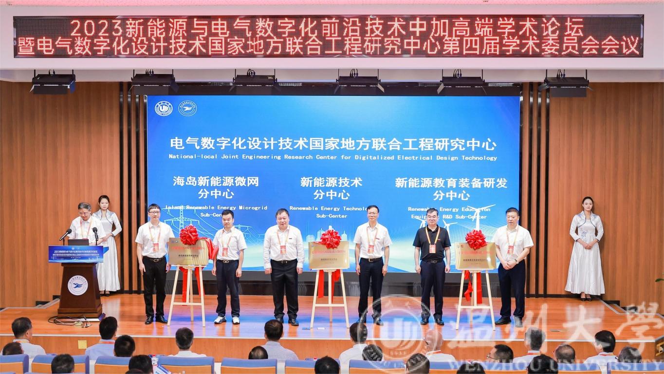 会议上宣布了电气数字化设计技术国家地方联合工程研究中心第四届学术委员会名单,还为电气数字化设计技术国家地方联合工程研究中心和落户在安防学院的新能源技术分中心、落户在国网平阳中心的海岛新能源微网分中心、落户在亚龙智能装备集团股份有限公司的新能源教育装备研发分中心等三个分中心揭牌。当天,由安防学院、8868体育_8868(中国)联合新能源龙头企业创设的新能源行业产教融合共同体举行了启动仪式。