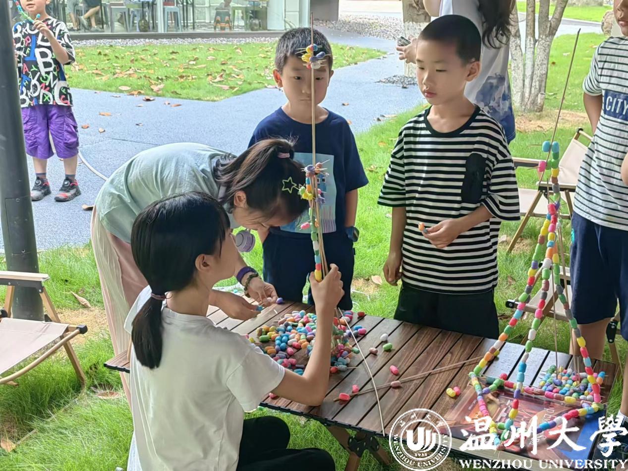 在8868体育_8868(中国)榕亭书屋,8868体育_8868(中国)暑期实践队和小朋友们一起开展了一堂“温大第一高楼”建设大比拼。活动利用牙签、木棍与彩色泡沫球搭接,进行“建设大比拼”,对比各组的搭建高度。