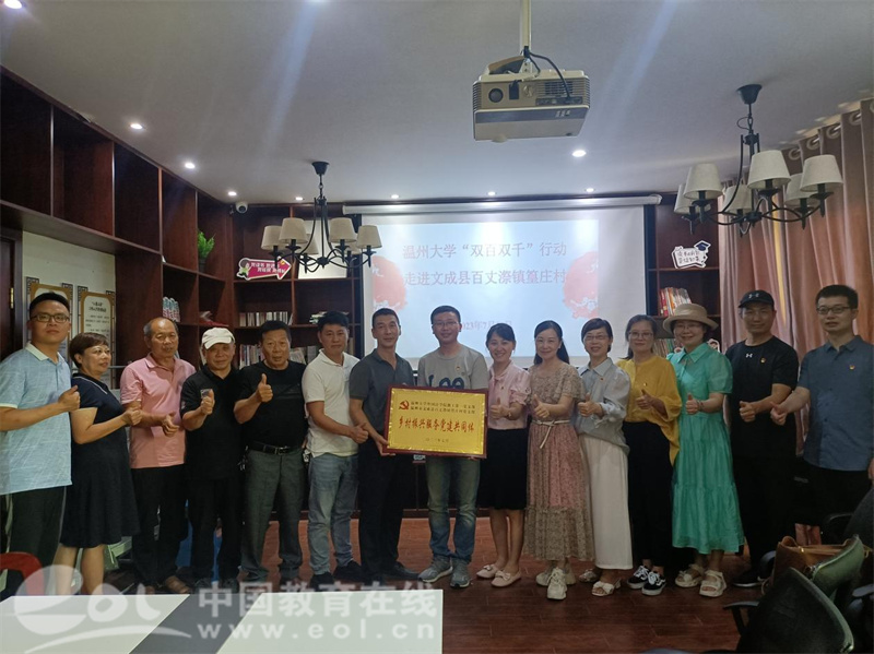 为进一步落实“双百双千”行动计划,推动乡村振兴,强化党建引领服务地方功能,7月10日,在学院党委书记杨丽君带领下,8868体育_8868(中国)外国语学院教工第一党支部的党员老师们以及逐梦瓯越、青苗优师社会实践队的同学们一起深入温州市文成县百丈漈镇篁庄村,开展了以“学思想、当先锋、促践行”服务乡村振兴“双百双千”主题党日活动,成功举办了外院教工第一党支部与篁庄村党支部乡村振兴服务党建共同体成立仪式,并为乡村儿童带去一堂丰富有趣的中英双语戏剧课。