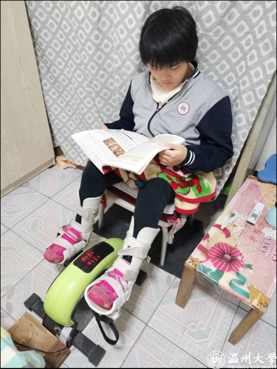 她说,从小学开始,父母就坚持陪读,每天都不惧风雨接送她上下学,这一点让她明白她与别人没什么不同。也正因如此,她从没有想过自暴自弃,就此沉沦。她一直勉励自己,督促自己努力学习,一边康复一边学习也成为了她的常态,甚至有时身体不适,她也坚持一边住院一边学习。