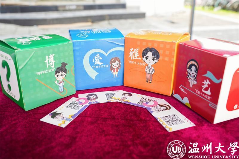 来教院,“博爱雅艺”盲盒任你抽,条条大路通罗马。新生现场抽取“盲盒”教院大礼包。它可以是“博”,同学们扫码即可从精心设计的书单中挑选一本自己最感兴趣的书籍;它可以是“爱”,这份大礼的幸运儿享有与优秀的学长学姐一对一帮扶学友计划;它可以是“雅”,小萌新们现场参与亚运知识竞答获取亚运吉祥物,学习亚运礼仪当好东道主;它也可以是“艺”,激励新生们提前参与师生工作坊、各项创新创业专项目团队,通艺创新,才艺全面,习得教学能力与素养。