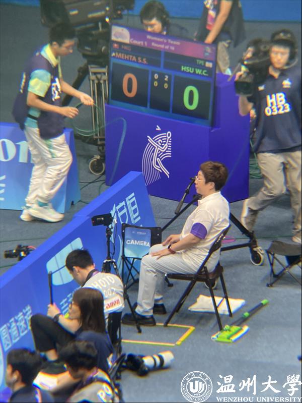 “作为一名优秀的裁判,必须要有强大的赛事洞察能力,能识别运动员的心理活动,才能更好地预判他们的后续行为,并为运动员创造公平、公正、良好的竞赛环境,让运动员赢得光彩、输得坦荡。接下来,在本硕生教学中,我打算将亚运工作见闻凝练为若干节日常素养课,让学生能浸润其间并看到更高的标准、奋起直追,无论从英语工具到运动心理!”周义义如是说。