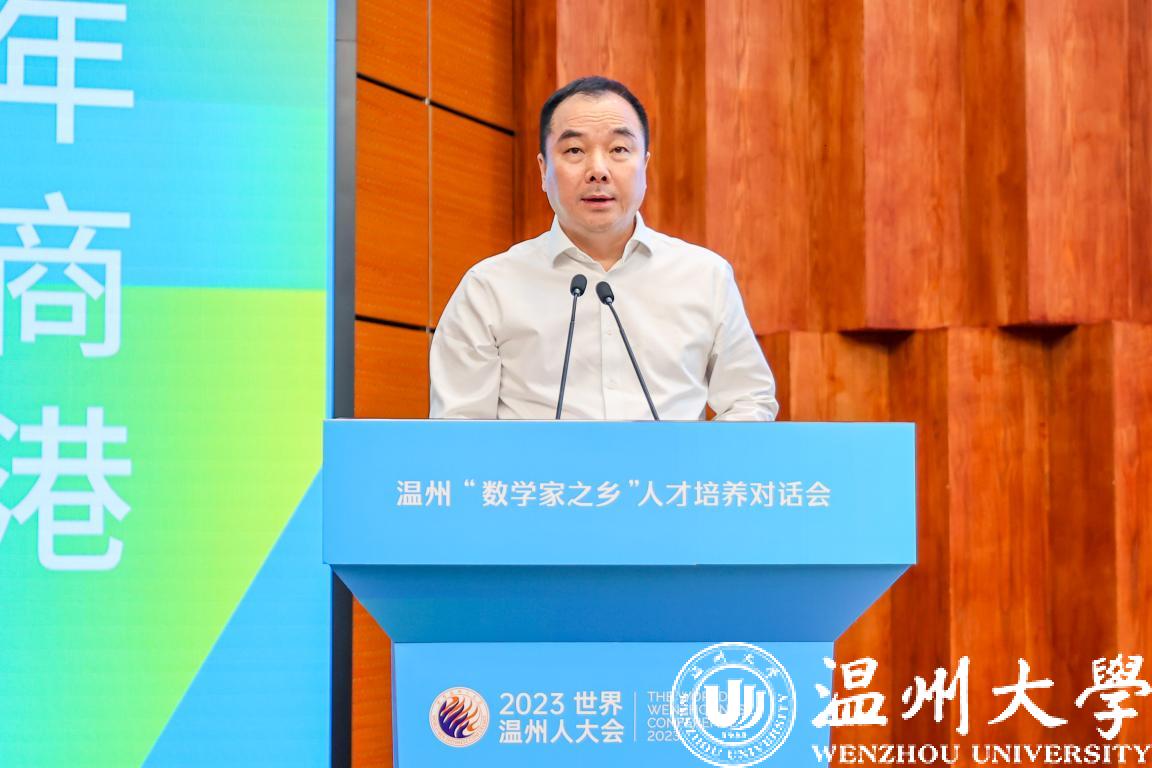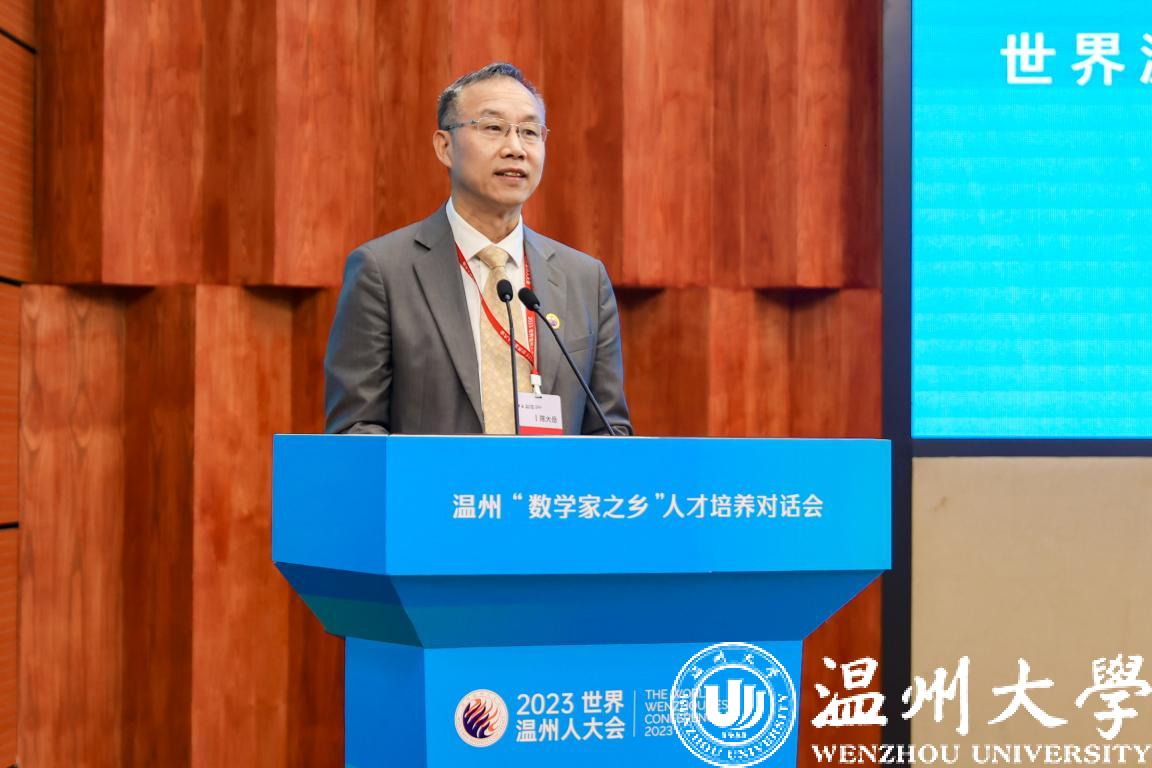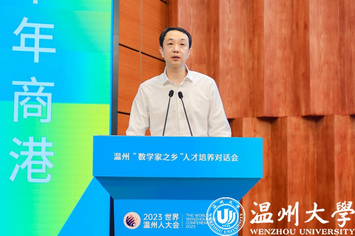 吕伯军代表温州市委、市政府向远道而来的各位嘉宾、向回到家乡的各位乡贤表示热烈欢迎,对一直以来支持温州发展的各界人士表示衷心感谢。他表示,数学是科技创新的基础学科,也是促进浙江、促进温州发展的重要力量。他提出三点希望,希望大家把温州数学的基因赓续好,传承好,探索更高质量的数学发展之路,推动温州乃至全省全国的数学事业高质量发展;希望大家以数学为桥梁,以对话为媒介,在学科建设,学术应用上深化与温州的交流合作,让更多先进理念、前沿成果和教育项目能够落地温州,扎根温州,为温州实现从商行天下到智行天下转型发展贡献数学力量;希望大家与温州的未来携手共进,深入体会千年商港幸福温州的独特韵味,为温州的数学事业的发展、创新高地的建设提供更多的人才动能和智力支撑。