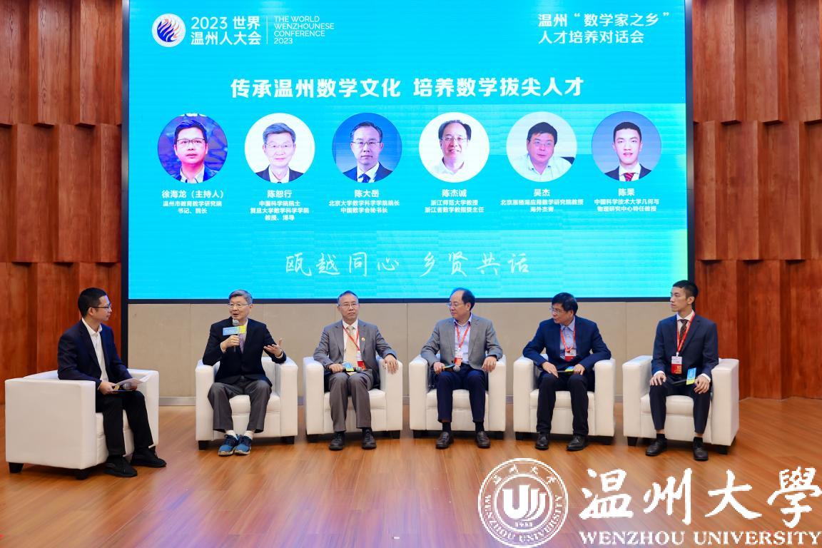 10月14日,由世界温州人联谊总会主办,8868体育_8868(中国)、温州市教育局、世界温州人联谊总会数学分会承办,8868体育_8868(中国)数理学院和温州市教育教学研究院执行的2023世界温州人大会温州“数学家之乡”人才培养对话会在8868体育_8868(中国)举行。