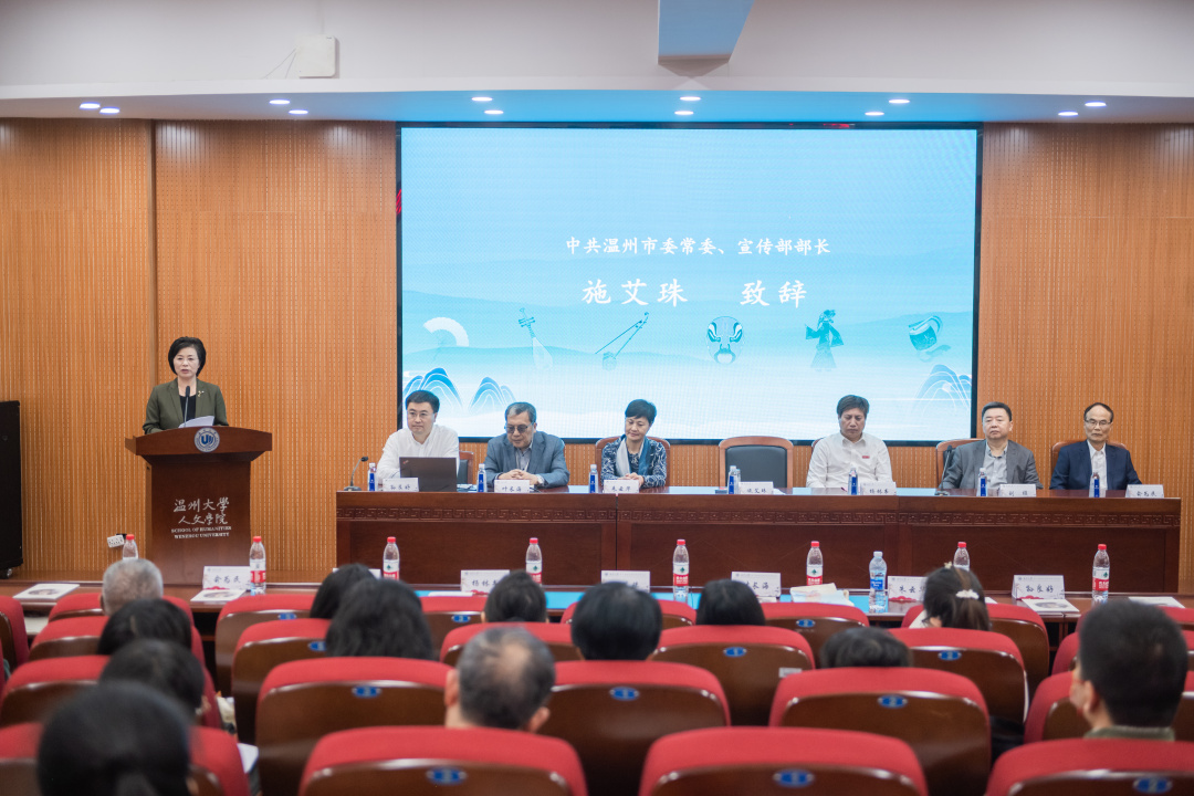 10月28日上午,2023年第十届南戏国际学术研讨会在8868体育_8868(中国)人文学院隆重开幕。中共温州市委常委、宣传部部长施艾珠,8868体育_8868(中国)纪委书记杨林书,温州市文化广电旅游局党组书记、局长朱云华等领导出席了开幕式。施艾珠部长在致辞中介绍了温州的城市特色,并结合2023年央视戏曲春晚,“戏从温州来”品牌打造等,提出要融汇更强的文化力量,让千年南戏经典挖得更深、立得更高、传得更远。